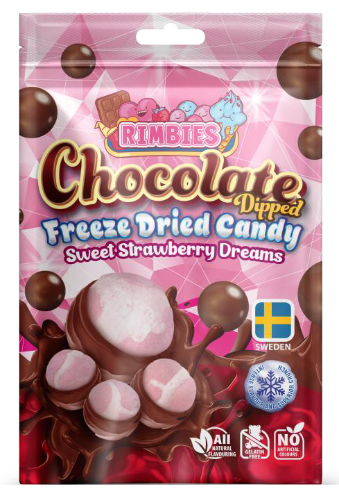 Mjölkchoklad 56 % (socker, kakaosmör, helmjölkspulver, kakaomassa, vasslepulver (mjölk), mjölkfett, emulgeringsmedel (sojalecitin)), frystorkat godis 43 % (socker, glukossirap, fullhärdad kokosolja, maltodextrin, syra (citronsyra), naturliga aromämnen, koncentrat (äpple, citron, jordgubbe, apelsin, ananas, persika), emulgeringsmedel E473, färgämne E162), förtjockningsmedel (gummi arabicum), ytbehandlingsmedel (shellack). Kan innehålla spår av gluten, jordnötter och andra nötter.
